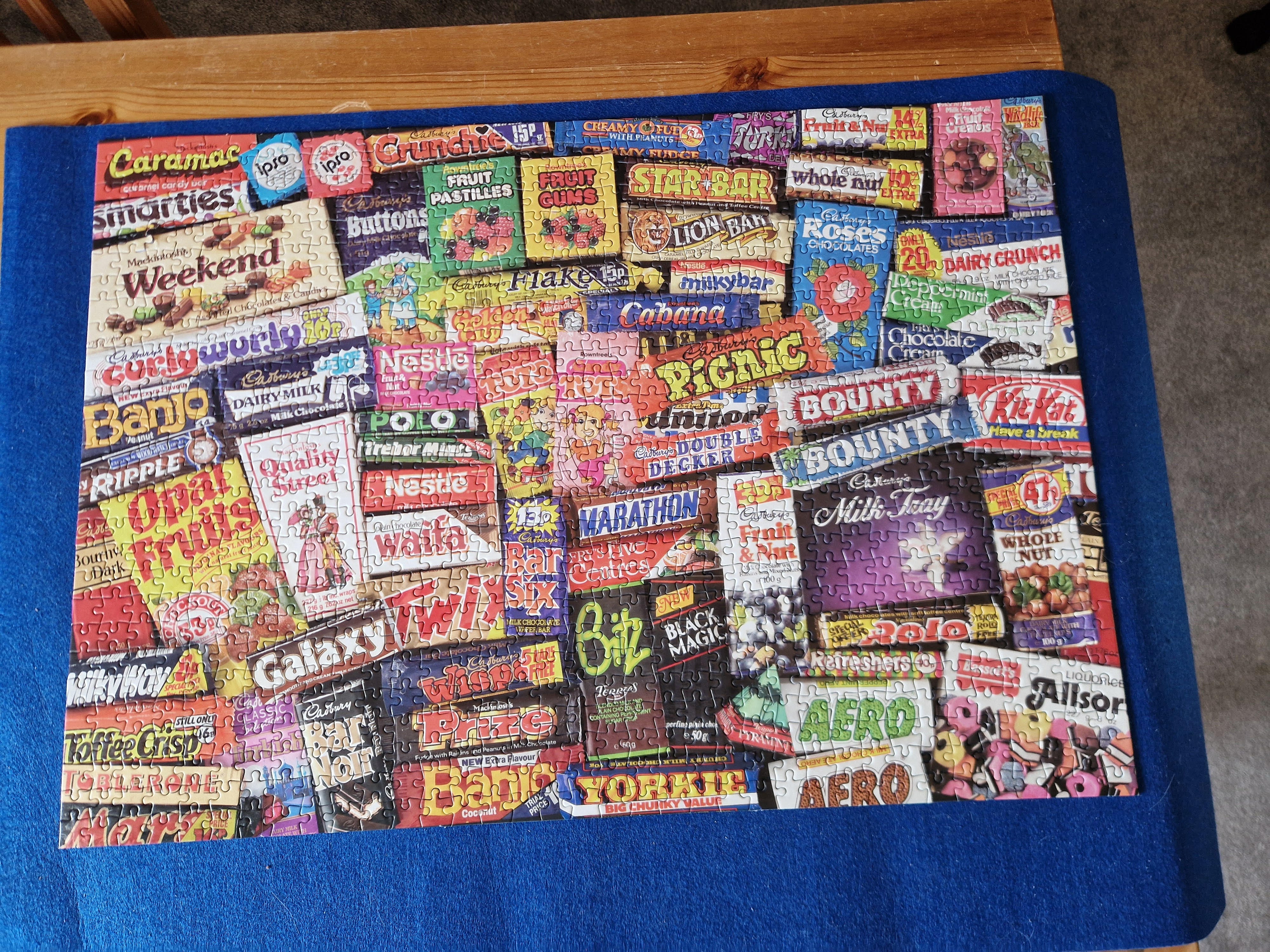 Over the last few days, I have combined two of my most effective wellbeing strategies: nostalgia and jigsaws. A box with the title 1980s Sweet Memories was impossible to resist last weekend, and I have just completed the jigsaw inside, pictured above. Four days for a 1000-piece jigsaw is about right for me. If I do it any quicker than that, it's a sure sign I am particularly stressed.